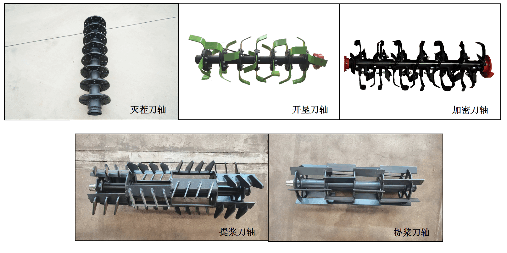 可根據(jù)水旱田及農(nóng)藝需要配制:滅茬刀軸、開墾刀軸、提漿刀軸、加密刀軸。