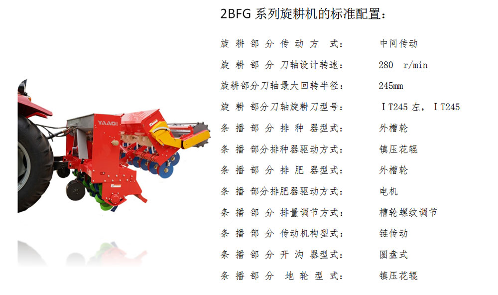 旋耕施肥播種機(jī)是一款多功能農(nóng)業(yè)機(jī)械設(shè)備,它集旋耕、施肥、播種、覆土、鎮(zhèn)壓于一體,一次作業(yè)可完成多項(xiàng)任務(wù),減少機(jī)械進(jìn)地次數(shù),節(jié)約成本。微電腦電機(jī)控制施肥,無級調(diào)速,專用設(shè)計(jì)不銹鋼導(dǎo)肥槽,保證撒肥面積均勻,鎮(zhèn)壓輥后驅(qū)動(dòng),增加防滑裝置,保證播種質(zhì)量,配套圓盤開溝器,保證種子落地準(zhǔn)確,防止纏草,一機(jī)多用,經(jīng)過調(diào)整可以切換為花生平播或壟播,小麥、旱稻、油菜、高梁平播等多種狀態(tài)。主要功能如下:
