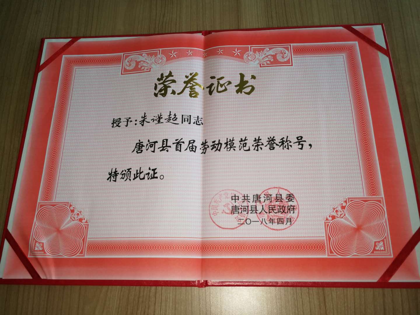 在“五·一”來(lái)臨之際,唐河縣委、唐河縣人民政府為首屆勞動(dòng)模范頒發(fā)了榮譽(yù)證書(shū)及獎(jiǎng)?wù)隆啺哪详?yáng)公司朱謹(jǐn)超同志喜獲殊榮。