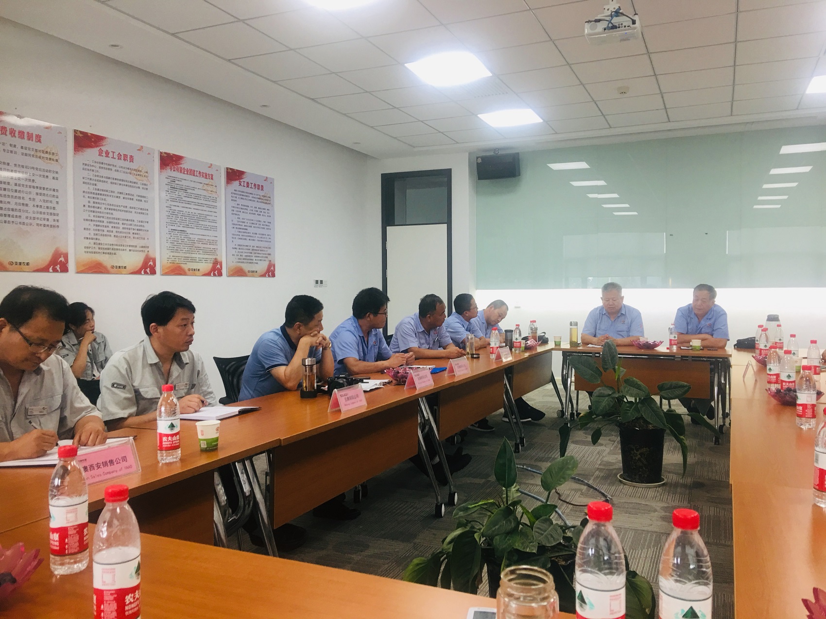 隨后,一行人來到了會議室舉行了座談會,亞澳西安公司王總表示,本次來到南陽公司的目的是為了學(xué)習(xí)了解南陽工廠生產(chǎn)的產(chǎn)品,反饋目前銷售中存在的問題,同時通過對南陽工廠的理解激發(fā)一下員工對未來市場的銷售信心。