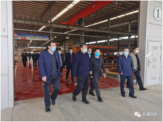 霍好勝一行在亞澳農(nóng)機調(diào)研與公司總經(jīng)理史炳哲進行深入交流,詳細(xì)了解疫情防控、復(fù)工進度和遇到的困難等問題,并深入生產(chǎn)區(qū)一線現(xiàn)場查看企業(yè)的生產(chǎn)狀況。