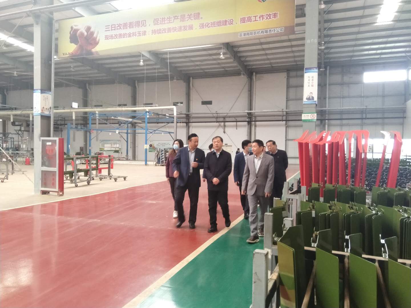 04月21日,河南省市兩委組織部領導考察團在唐河縣委書記周天龍、縣委副書記趙陽等領導陪同下蒞臨亞澳南陽農機進行考察調研。亞澳南陽農機總經理史炳哲先生詳細介紹了亞澳南陽農機全產業(yè)鏈模式。