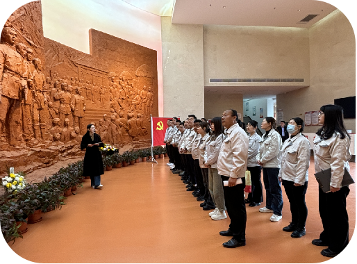 活動現(xiàn)場、各位員工代表手持鮮花列隊肅立在莊嚴的烈士紀念碑前,依次將鮮花擺在紀念碑石階上,駐足凝視、以寄哀思,隨后全體鞠躬、默哀,向革命先烈們致以崇高的敬意、表達無限的緬懷之情。