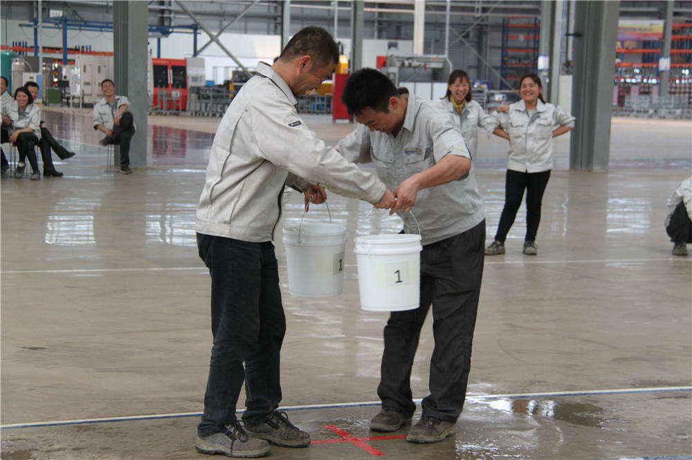 下午13:30在運動場出現(xiàn)了擺放有序的水桶,這是我們的第二項活動:精益運輸大接力取水點的距離分別大于等于10米,每個桶分別裝滿10L水,每組隊員是五個人,要在120秒內(nèi)完成大桶水量的收集,超過120秒的隊員淘汰出局,在規(guī)定的時間內(nèi),水量收集多者獲勝,抽簽決定出場順序,這項活動是讓員工明白精益化生產(chǎn)體系的精髓所在之處;減少過程浪費,實現(xiàn)低成本的快速交付,滿足客戶的同時,做到細(xì)節(jié)控制,提升產(chǎn)品使用價值,提升公司盈利空間。比賽開始了只見隊員雙手提起20L的水往下一站的隊友那里送,中間會有灑水會很累,但是每個人都為了自己隊伍的榮譽拼盡全力向終點奔去,旁邊的隊友為他們加油、吶喊,最終自焊獲得第一名。