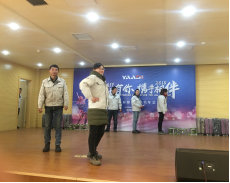接著使人捧腹大笑的話劇表演《羅密歐與朱麗葉》、優(yōu)美激昂的詩朗誦《十年獨白》、別具一格的《三句半》、令人陶醉的深情歌唱《男人花》、貼近現(xiàn)實生活又精彩的小品《應聘》一一登上了舞臺。中間穿插的小游戲更是把年會推上了高潮。
