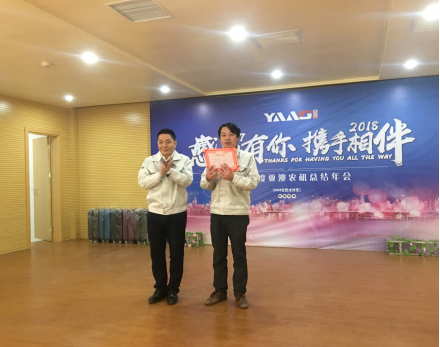 年會初始,總經(jīng)理史炳哲致新年賀詞,并做了2017年年度總結,宣讀了2018年度規(guī)劃。對亞澳全體員工在過去一年中做出的努力和奉獻給予了充分的肯定和贊揚。接著由生產(chǎn)主管王紅衛(wèi)和質(zhì)檢作業(yè)長朱謹超分別為我們作了2017年工作總結及涂裝質(zhì)量問題分析。最后由總經(jīng)辦郭靖特助宣讀了2017年度表彰決定,對優(yōu)秀員工,優(yōu)秀班組、市場開發(fā)先鋒、項目申報、新產(chǎn)品開發(fā)等五個獎項,共15人進行了表彰。
