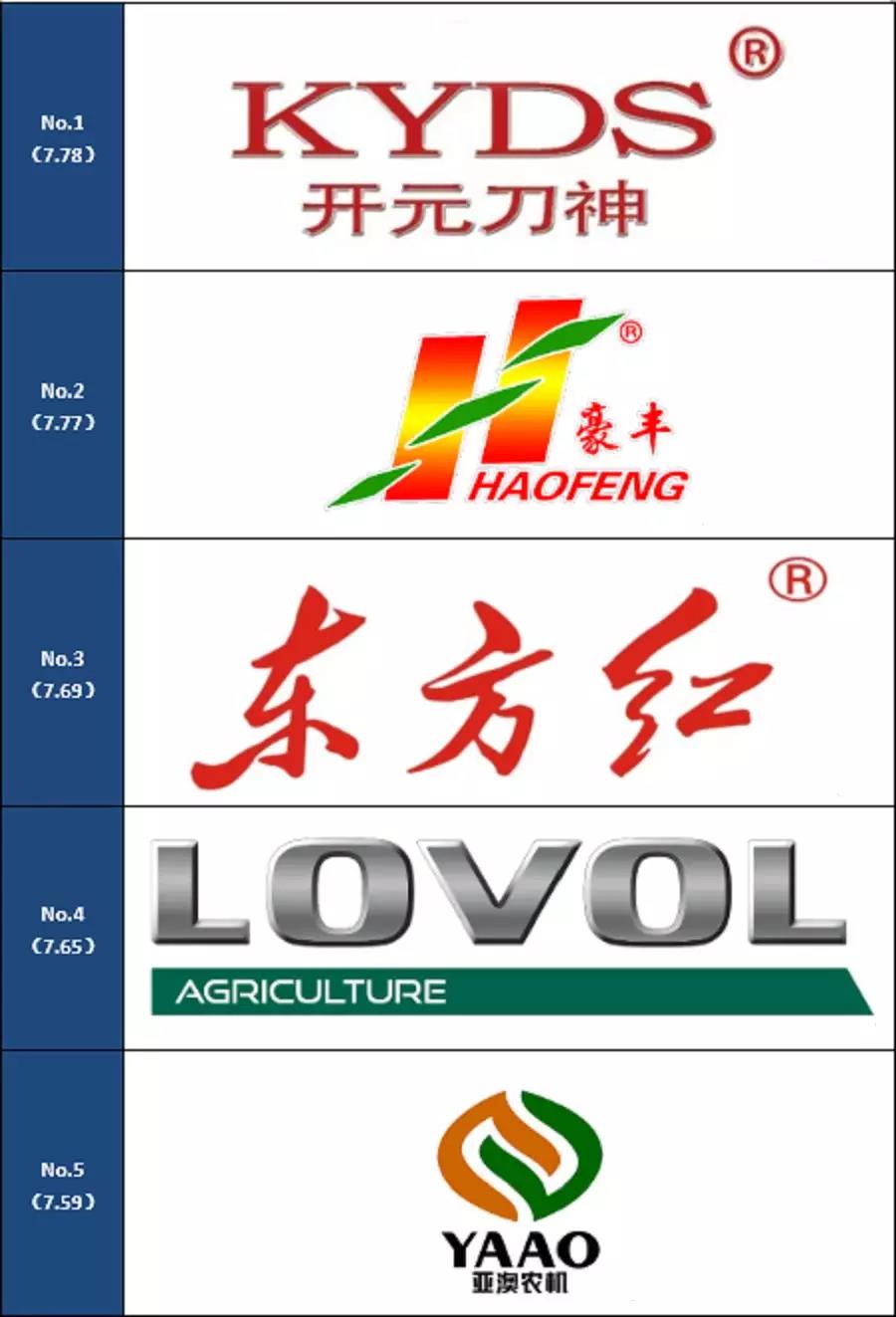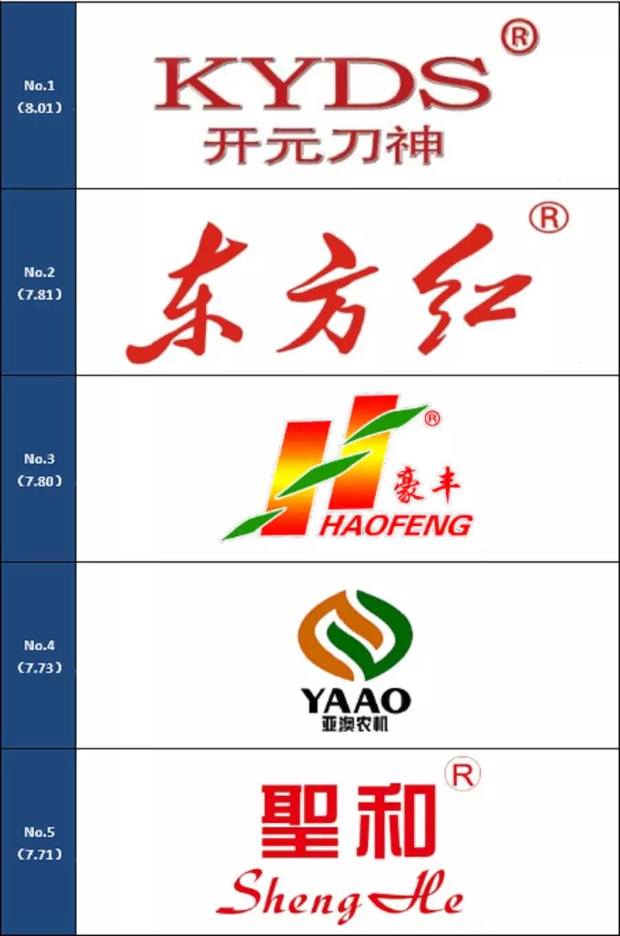通過(guò)上面的一系列計(jì)算,入選旋耕機(jī)滿意品牌的是:開元刀神、豪豐、東方紅、亞澳、圣和。